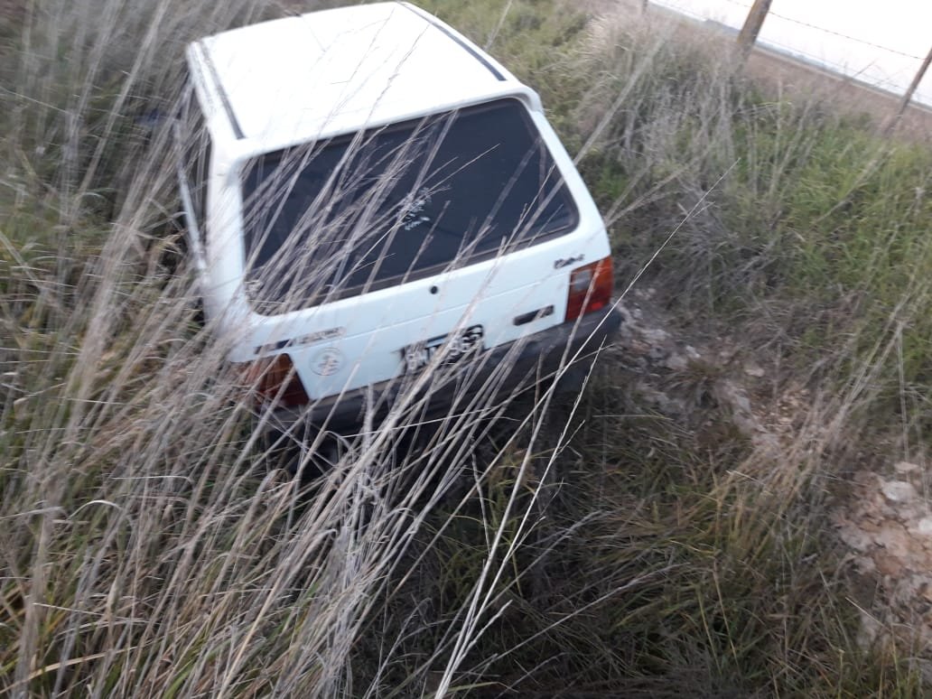 Ante un llamado telefónico, personal del Comando de Prevención Rural Laprida tomo intervención ante el despiste de un automóvil en cercanías del Matadero Municipal.