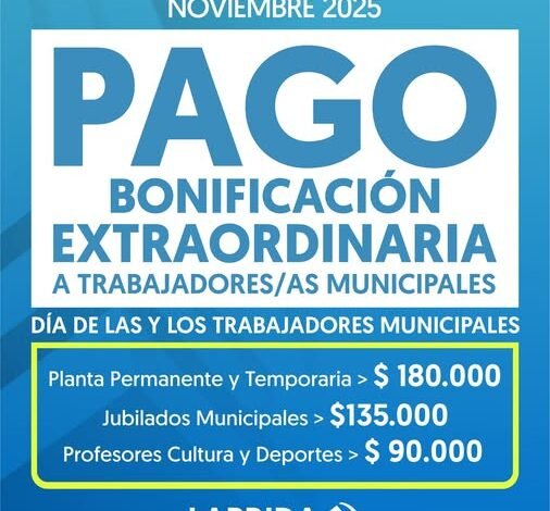 PAGO DE BONIFICACIÓN EXTRAORDINARIA A TRABAJADORES/AS MUNICIPALES