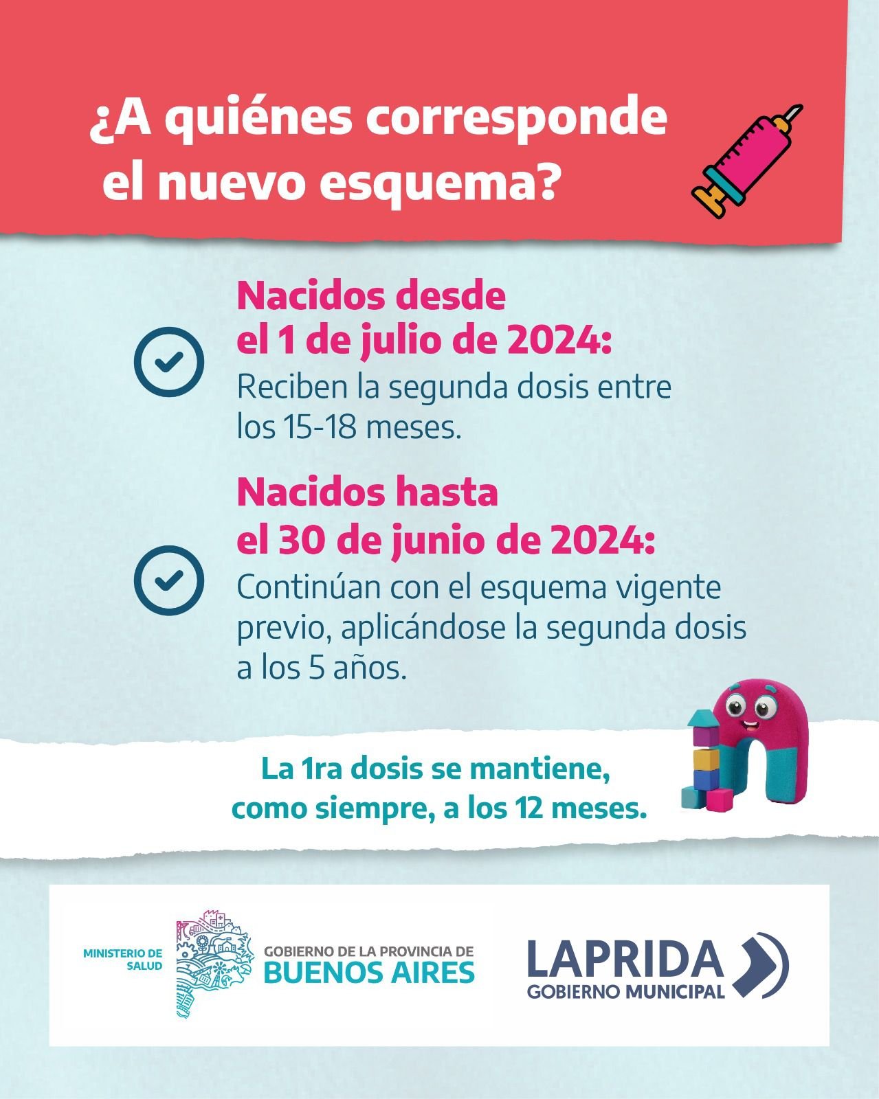 Este nuevo esquema se aplicará a todos los nacidos desde el 1 de julio de 2024, los nacidos con anterioridad a esa fecha, continuarán recibiendo la vacuna como lo indica el antiguo esquema, a los 5 años.