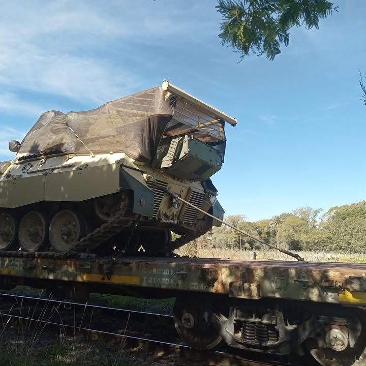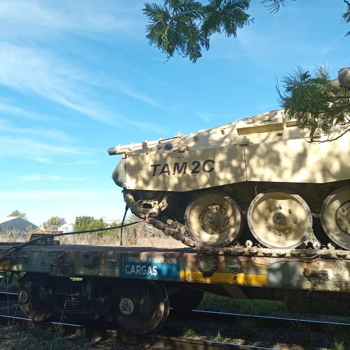 La formación con treinta vagones cargados con elementos del Ejército Argentino, entre los que destacaron tanques, camionetas y otros vehículos blindados tiene como destino final Darwin, provincia de Río Negro.