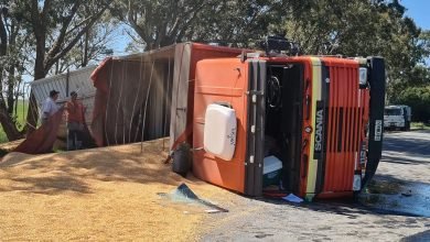 Un camionero de La Madrid volcó en Pringles