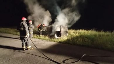 Incendio de un utilitario sobre la Ruta 86 en cercanías de bajada a Quillalauquen