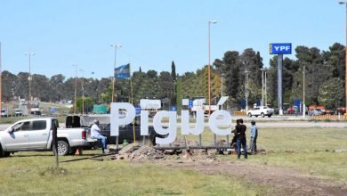 Insólito: pusieron al revés una letra en el cartel de acceso a Pigüé