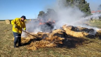 INCENDIO DE ROLLOS DE PASTURA EN CAMPO